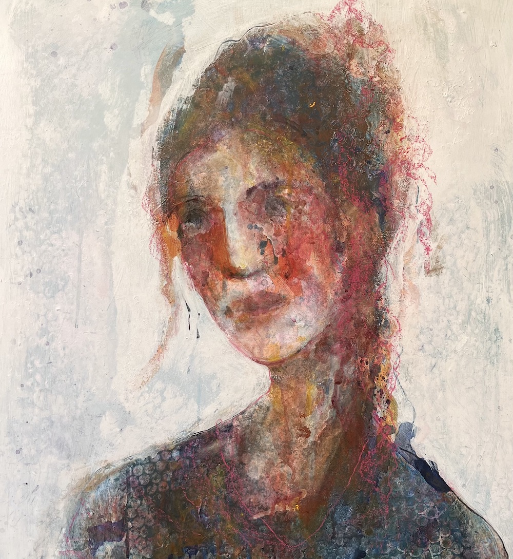 Confessor, Mixed Media, 60x60cm, available via Velvet Easel Gallery